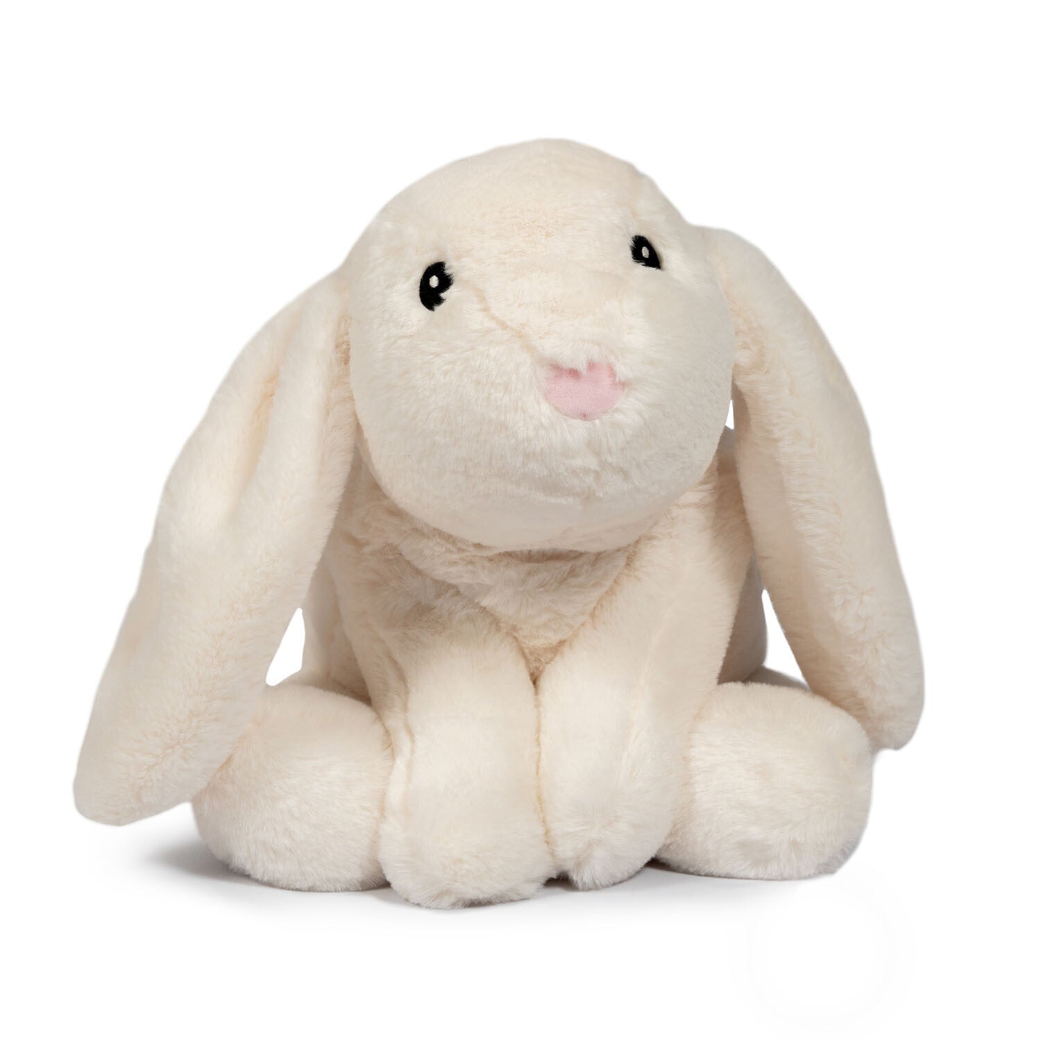 Med sine fine sorte øjne og en blød, rosafarvet næse er denne fine hvide tyngdekanin klar til at tilbyde endeløse kram og komfort til ethvert barn, der har brug for lidt ekstra tryghed.