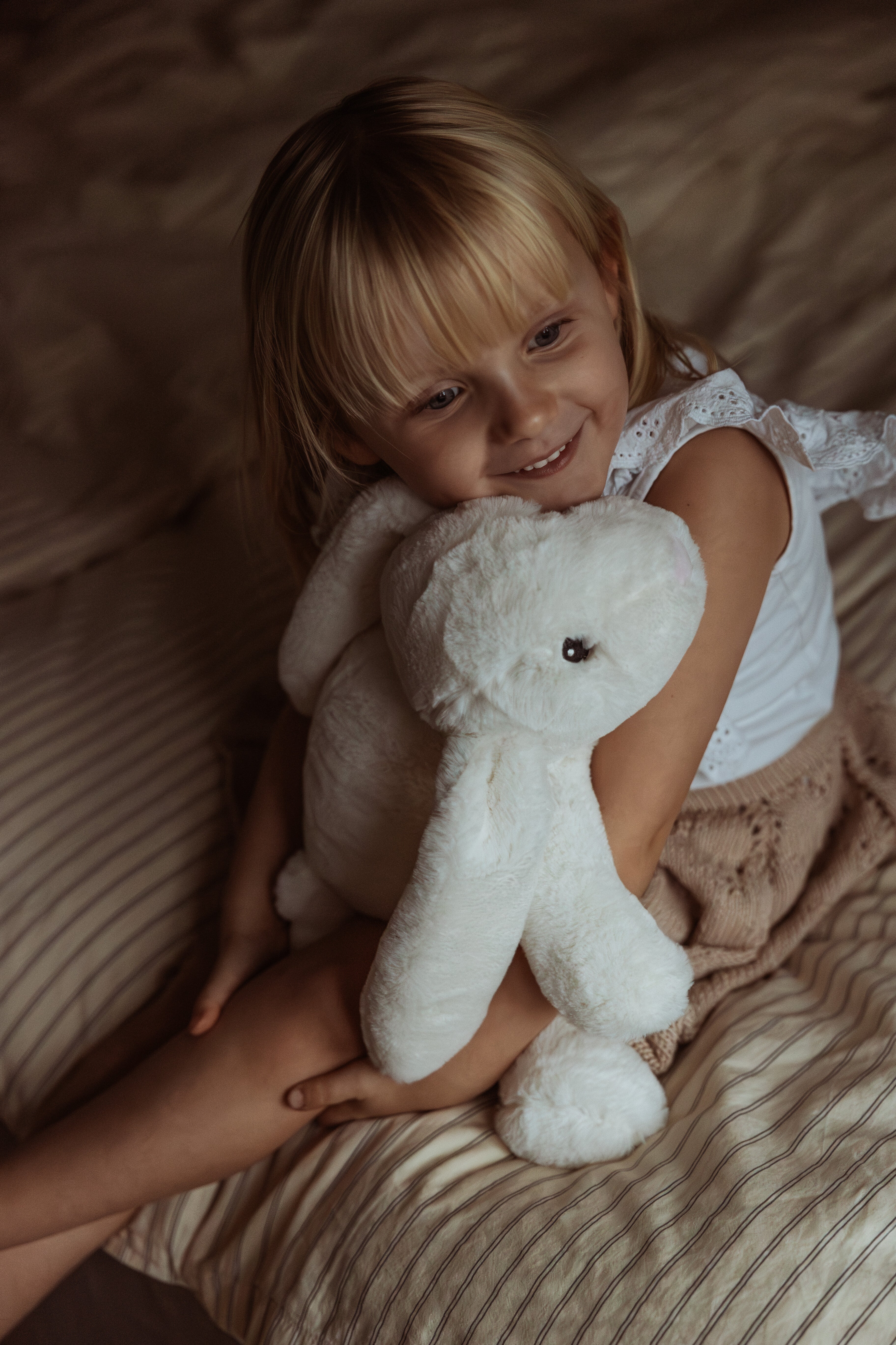 Med lange, hængende ører og ultrablød pels tilbyder denne 1,2 kg tunge kanin en perfekt balance mellem varme og afslapning. Dens hyggelige design sikrer, at den hurtigt bliver en elsket følgesvend, der følger børnene overalt og bringer en følelse af ro under leg, sengetid eller stille stunder.