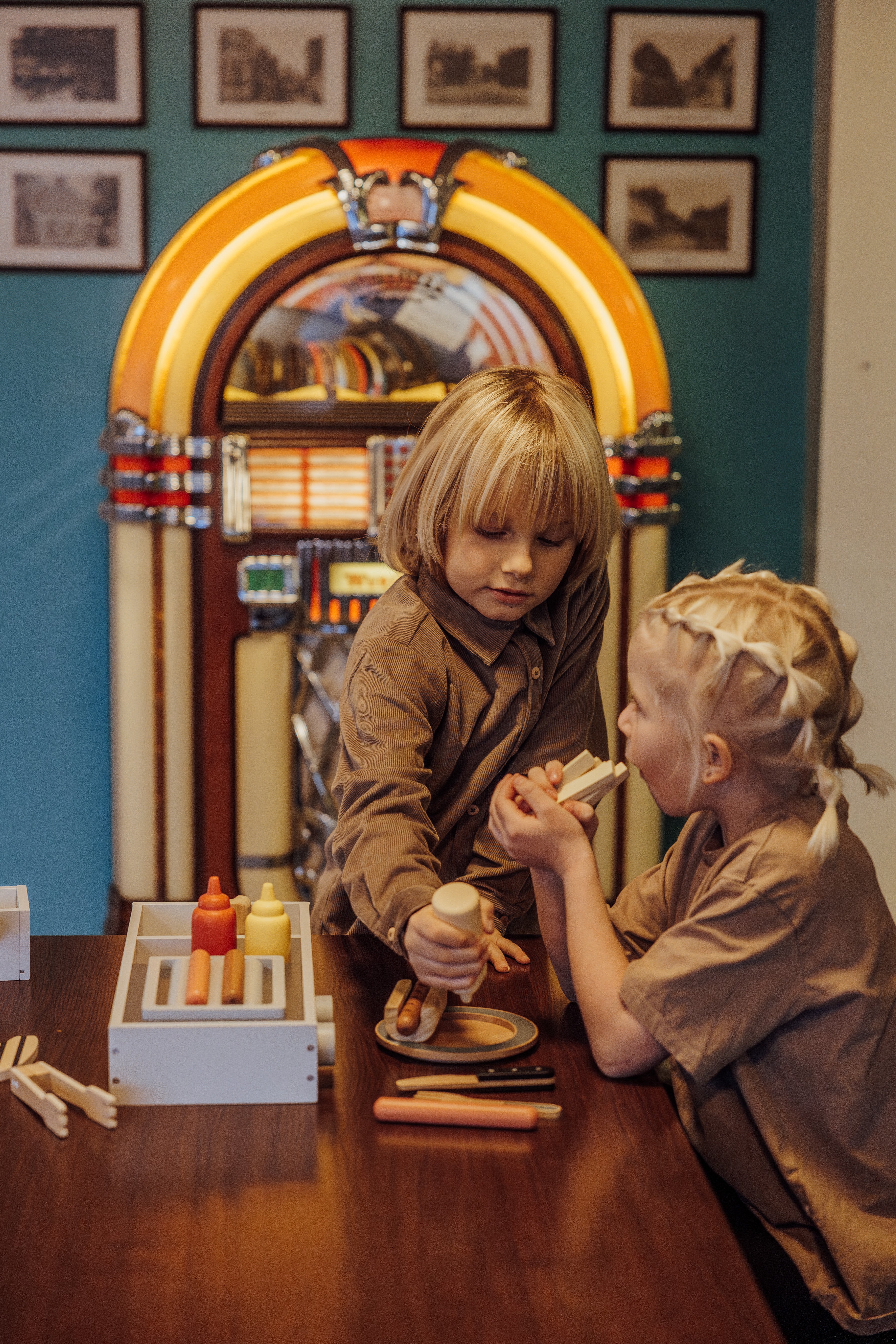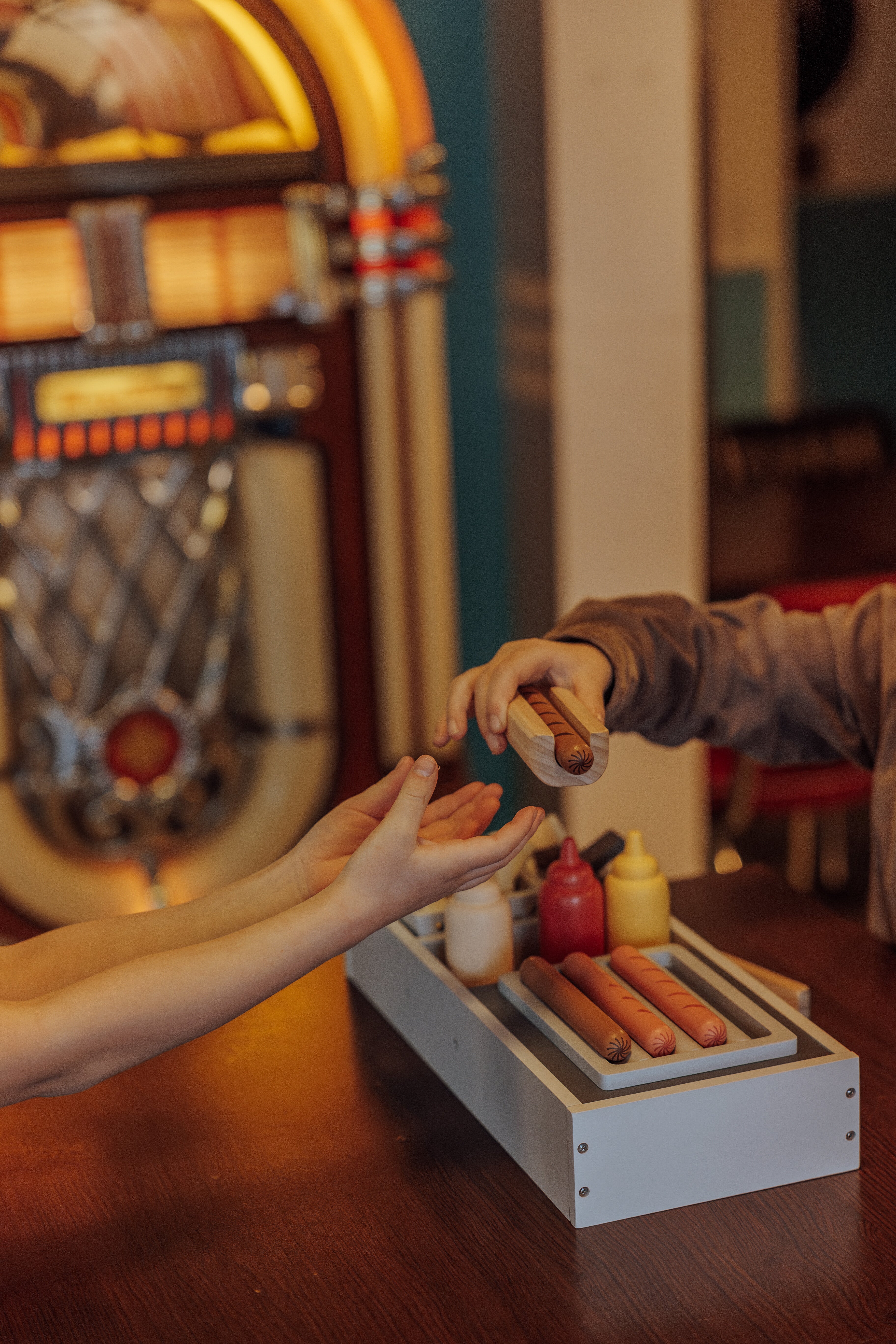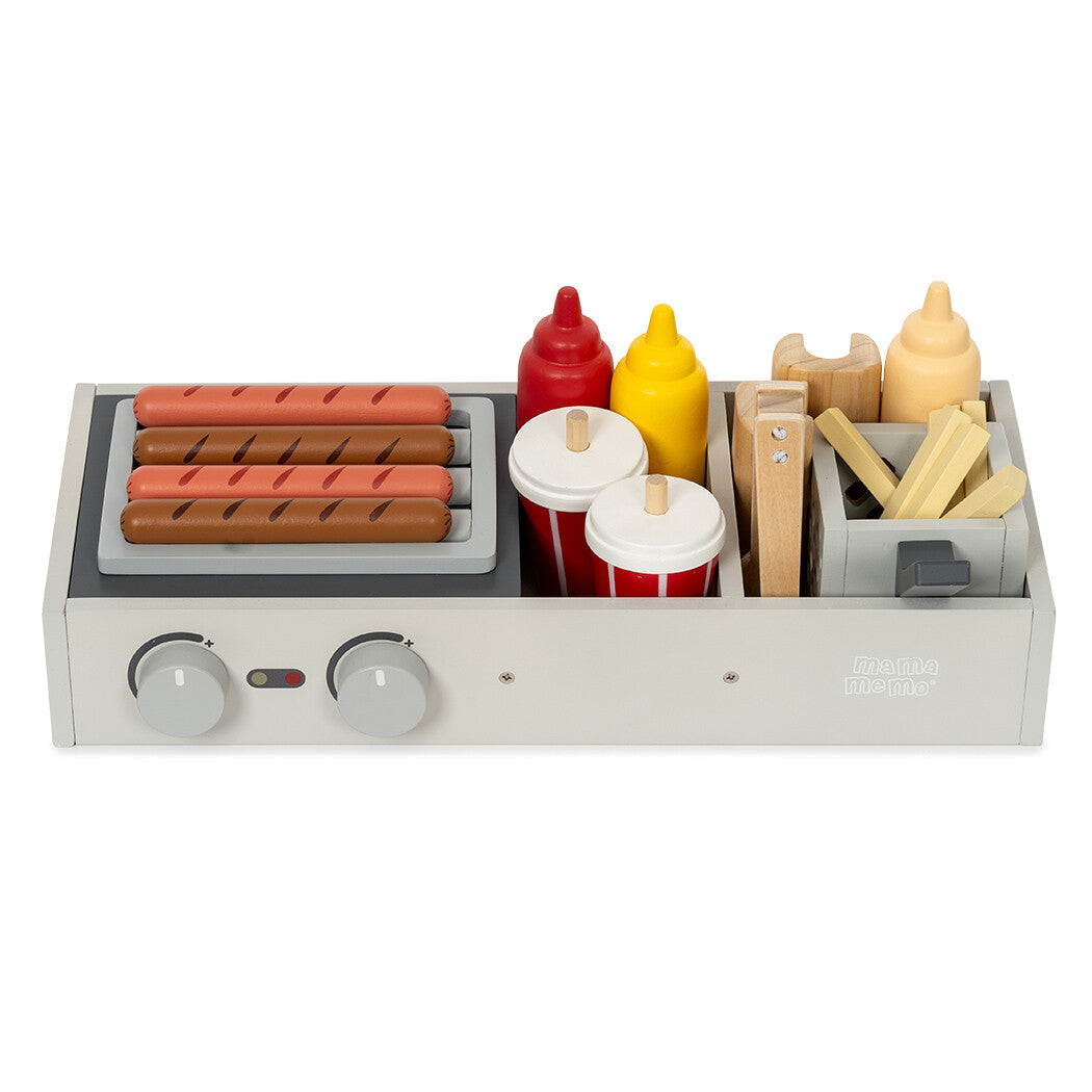 Komplet med realistiske pølser, brød, pincet, sprøde pommes frites og forfriskende sodavand, har denne pølsebod alle de nødvendige elementer til at skabe lækre fantasimåltider. De levende farver og det gennemtænkte design gør det nemt for børn at interagere med sættet og servere lækre hotdogs til familie, venner eller deres yndlingsbamser.Pølsebod
