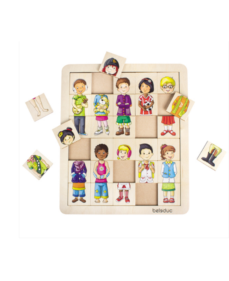Sjovt Match & Mix puslespil, hvor børnene kan sammensætte figurer af børn fra hele verden.