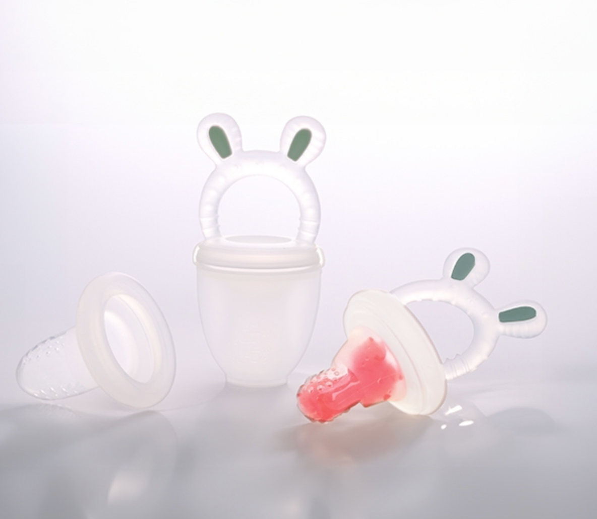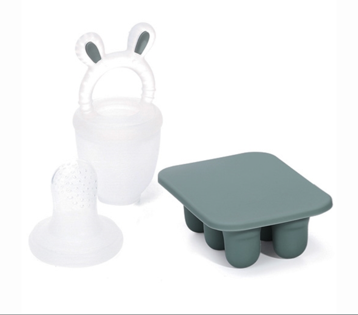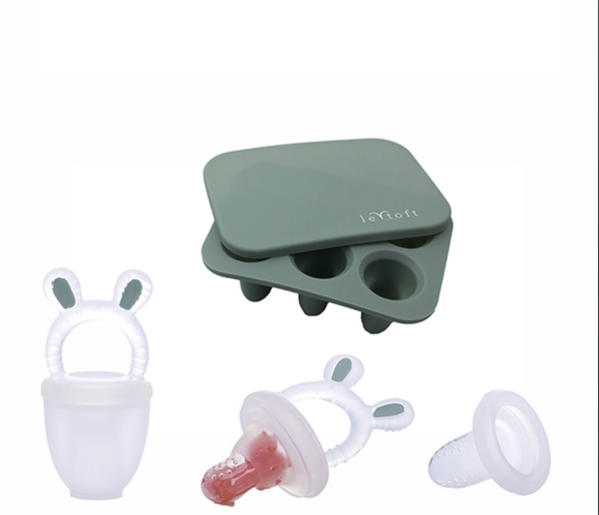 Introducer baby til spændende nye smage og teksturer med vores frugtsut med mini fryseform i den smukke farve smokey green.